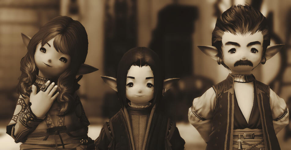 Born and raised in the city of Ul’dah, Lalamela Tatamela read all the books he could get his hands on. However, the lalafell had always aspired to see the world first-hand and had dreams of travelling the realm.Lalamela lost his parents, Lalabebo and Memela, in the Calamity at the age of sixteen summers. In the chaos of that day, some brass blades took it upon themselves to loot Mela's home, and took the lives of his parents when they tried to intervene while the terrified lalafell hid. He can’t remember much of this, as the trauma of the experience wiped his memory of the event. After that horrid day, Lalamela decided to study conjury at Stillglade Fane in Gridania as he believed having the ability to heal would stop him losing a loved one ever again. However, it took a considerable length of time for the lalafell to even grasp the simplest of conjury as he was in a period of grief and mourning. After he had learnt what he considered a decent amount, Lalamela left Gridania as he couldn't stand the prejudice against duskwights, keepers, and Ala Mhigan refugees there under the guise of it being 'the will of the elementals'. Lalamela then joined a mercenary company where he was soon to meet someone who would change his life forever.Due to his trauma, Lalamela used to have frequent nightmares and therefore always looked tired and had the tendency to doze off in places he really shouldn’t have. He also suffered frequent panic attacks. These days, however, he's doing a lot better, thanks to the care and love from those surrounding him.Nowadays, the 23 year old Lalafell and long-time friend Bernard Jeulerand run their own mercenary company, Carnation Corporation, where Lalamela runs the infirmary and does his best to help those around him. The company also runs their own bar and boutique, known as The Navigators Garden.
