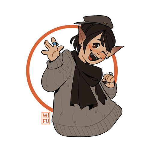 Hair: His dark brown hair varies in length depending on if he's cut it recently or not. Currently long (twin bun style).Eyes: A warm, deep brown.Height: 3 Fulms 2 Ilms.Voice: Lalamela's voice is similar to the Lindworm from the Netflix show 'Hilda'. Example here.Distinguishing Features: Two light reddish marks under both of his eyes. A dusting of freckles across his cheeks. Light blush.Common Accessories: Never, ever seen without his malachite earrings, which were one of the final gifts his parents gave him.Lalamela is a transgender man, but due to the lack of dimorphism in Lalafell, he's not taking any sort of substance to transition.